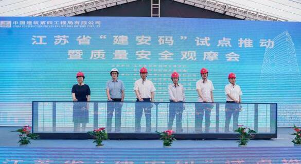 今天上午,由江蘇省住建廳主辦的全省「建安碼」試點推進暨質量安全觀摩會,在中建四局鹽城港航服務中心項目工地正式啟動。